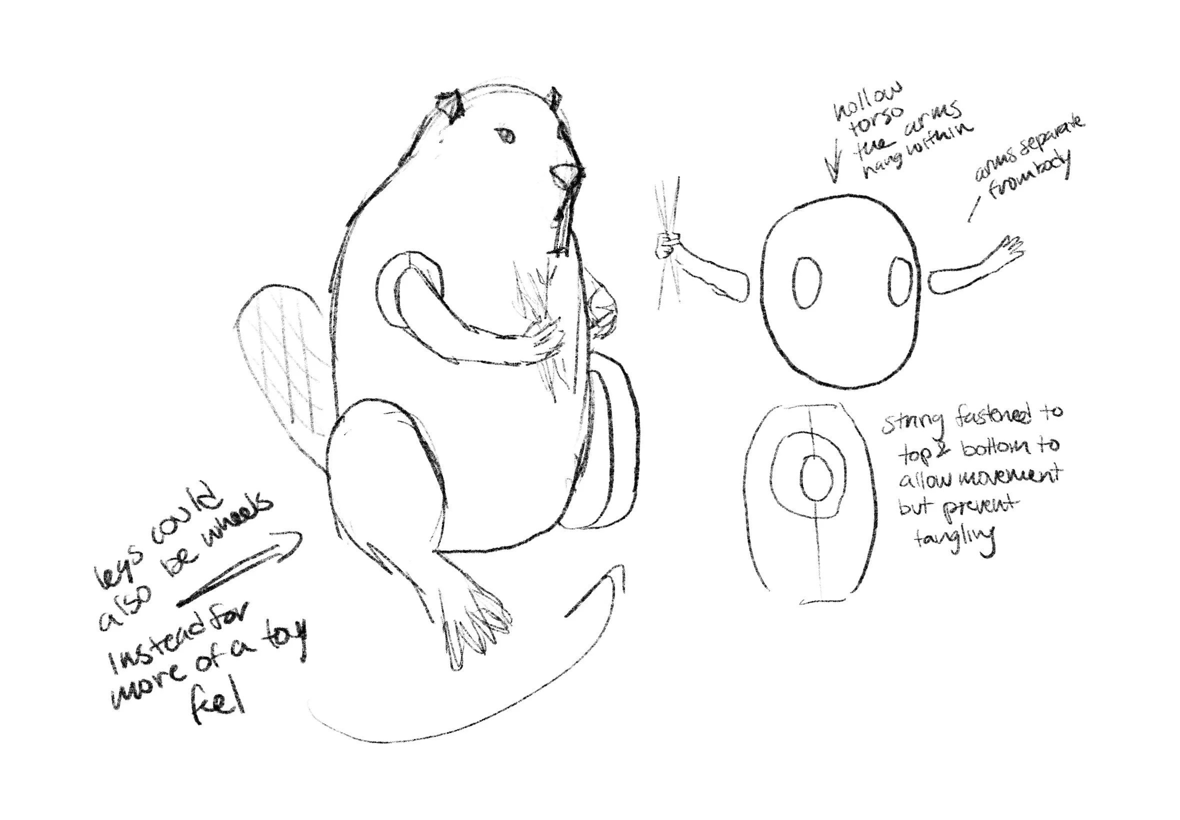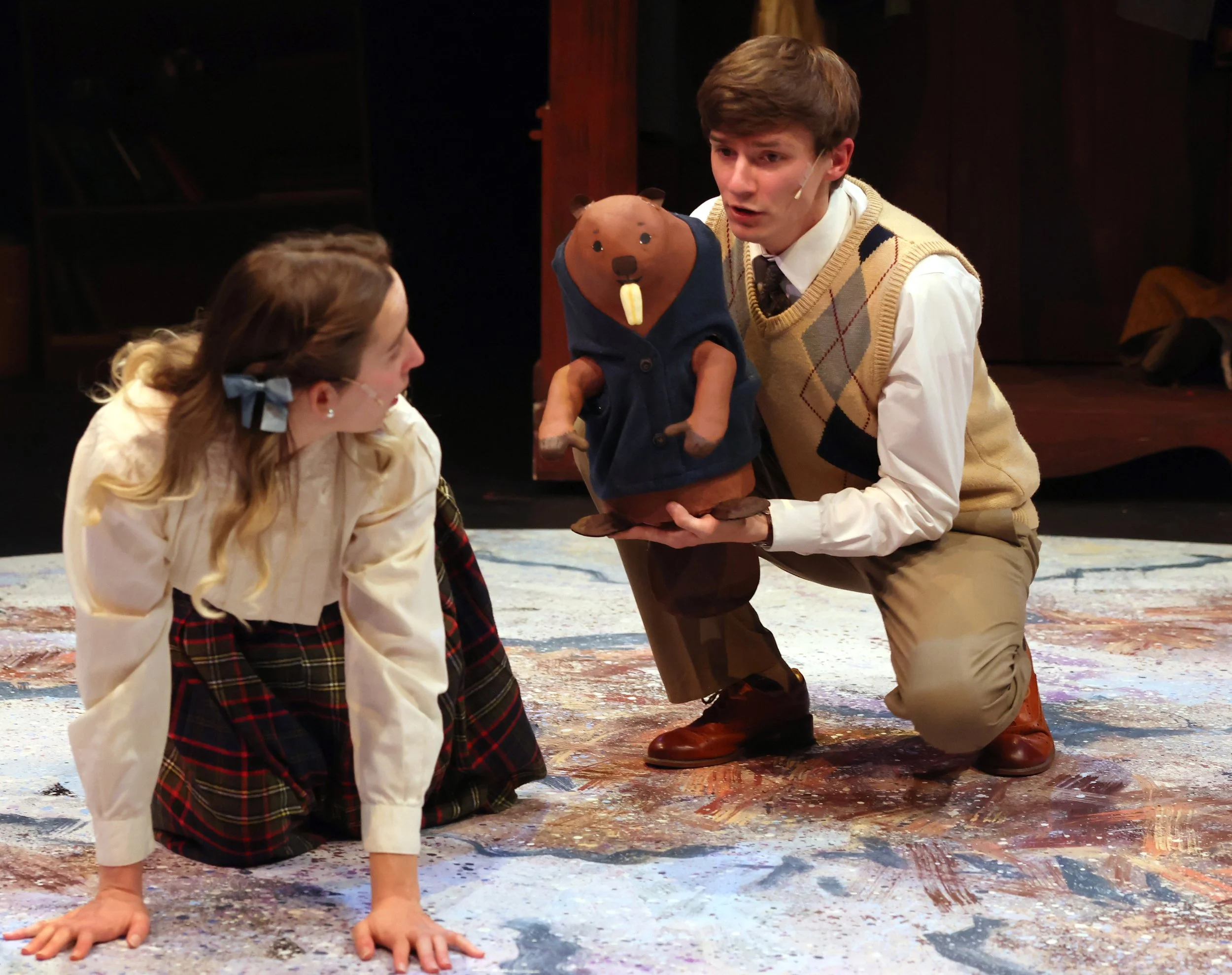 Beaver puppet with arms that move with the actor’s performance